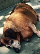 | Dog Goes Through Dramatic Weight Loss A severely obese dog named Vincent lost more than 20 pounds. Eight months ago he tipped the scales at 38 pounds, but today he weighs in at 17 ...